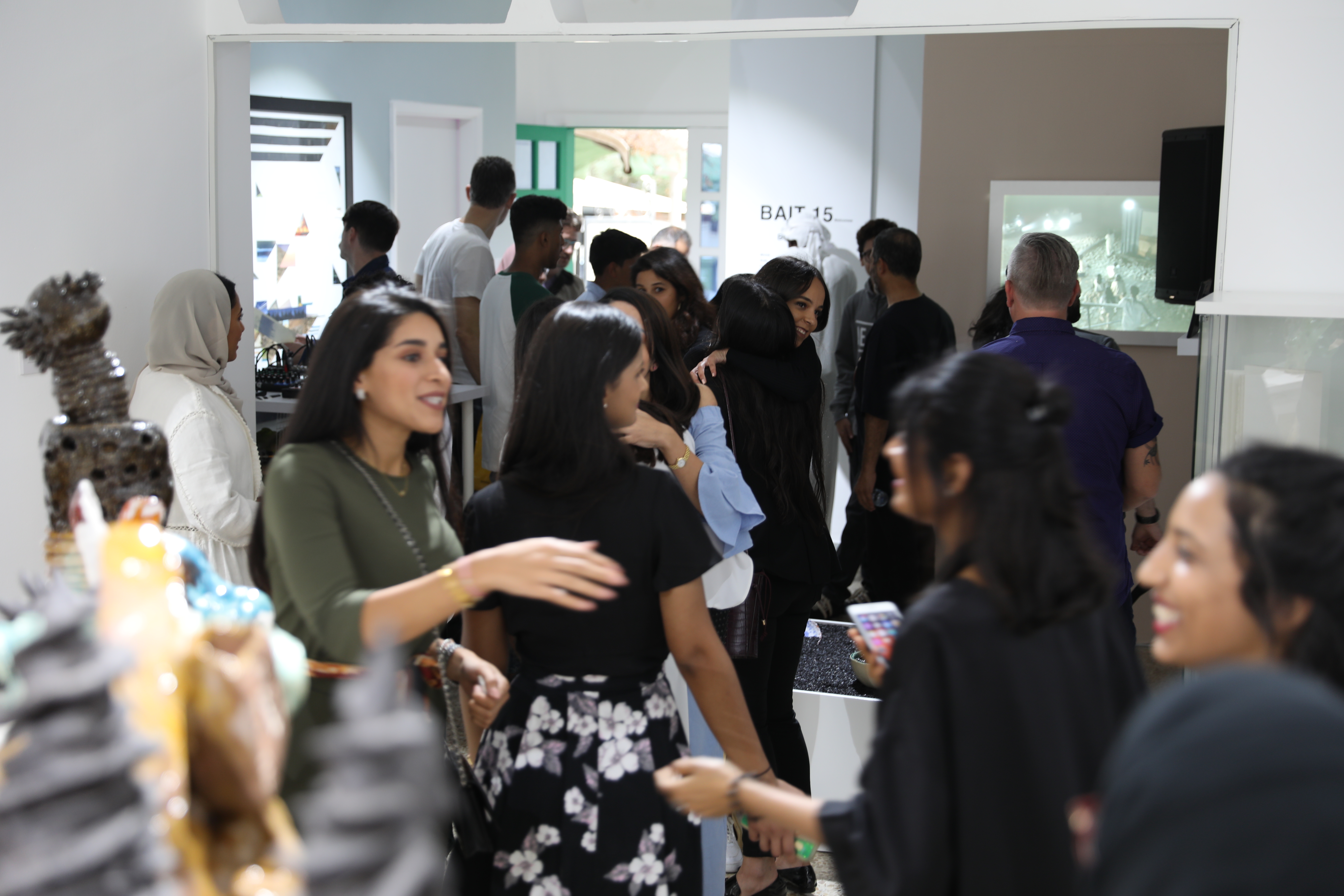 BAIT 15, located in Abu Dhabi’s Al Muroor area, first opened in late 2017. The space houses each member’s studio as well as an exhibition space. The house, while large enough for its members’ paintings, sculptures, and performance experiments, is also condensed enough to foster the sense of community, family and collaboration at its core. Usually open by appointment, BAIT 15 has little by little opened its doors for the public to interact with artworks, makers, and build community. This very place is where Hashel Al Lamki incubated ‘The Cup and The Saucer’ on view at Warehouse 421. BAIT 15 also housed 101’s first art sale recently featuring non-gallery represented artists in the UAE. Simply said, BAIT 15 is the beating heart of Abu Dhabi’s emerging art scene.