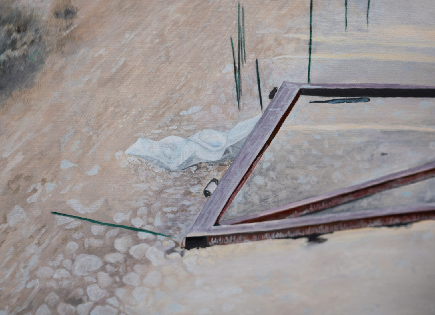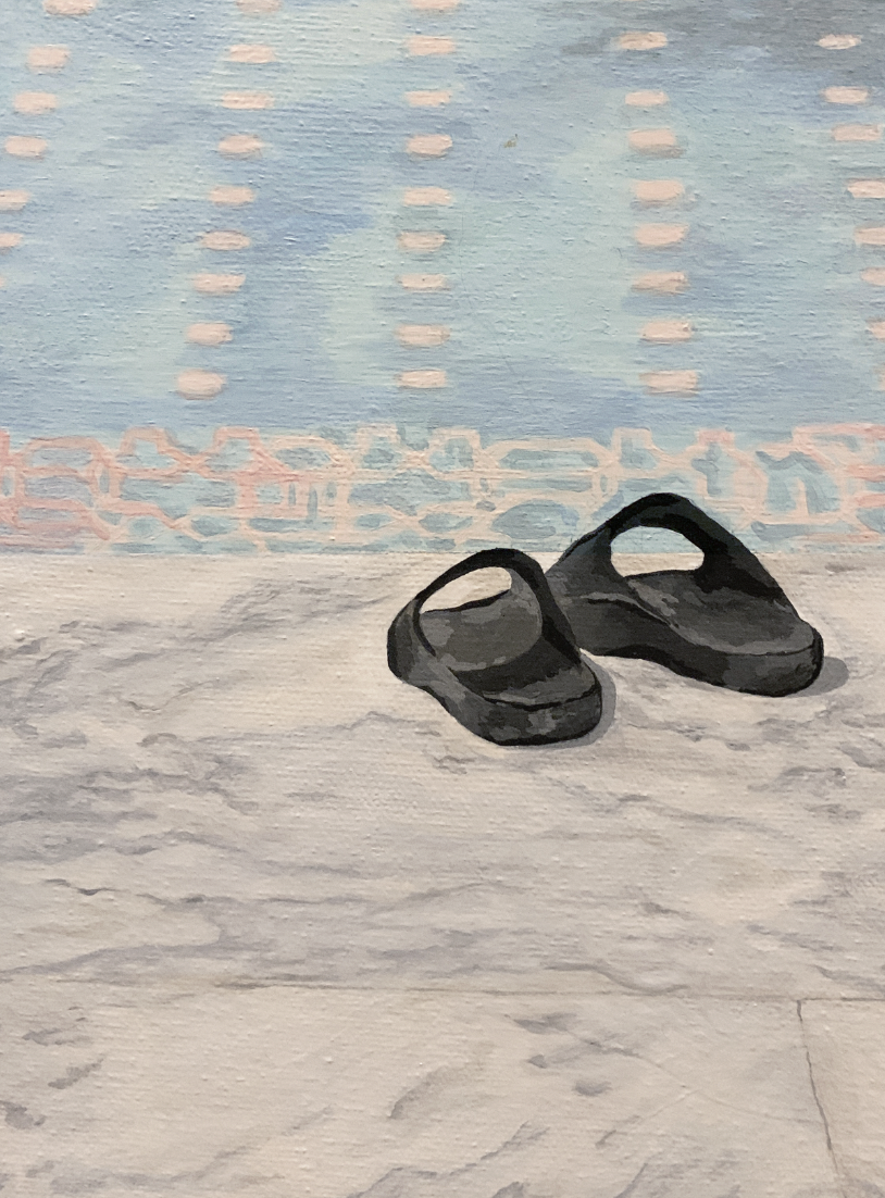 5. Hayfa Al Gwaiz, المدخل | Entrance, 2023. Detail views. Acrylic on canvas, 65 x 90cm. Courtesy of the artist.