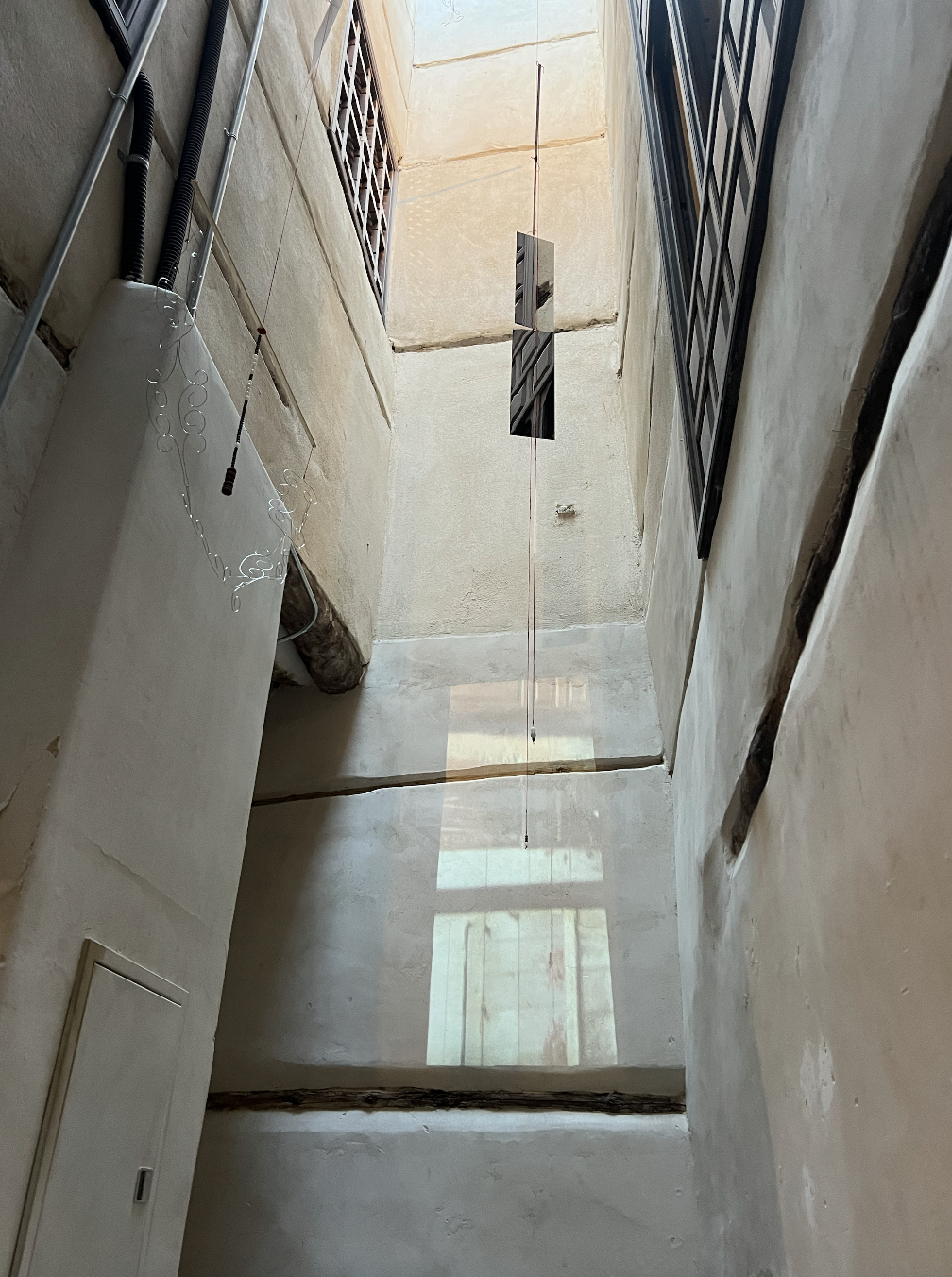 Central light wells are the cornerstone of Hijazi architecture. This minwar permitted light and air circulation inside the house. There are a lot of dilapidated buildings in Al Balad with framed openings. Decorative screens face one side of the house to the next, with decorative mashrabiya screens layered to create shadows. Windows are the physical manifestation of the past connecting and framing the present, it allowed me to travel through time.