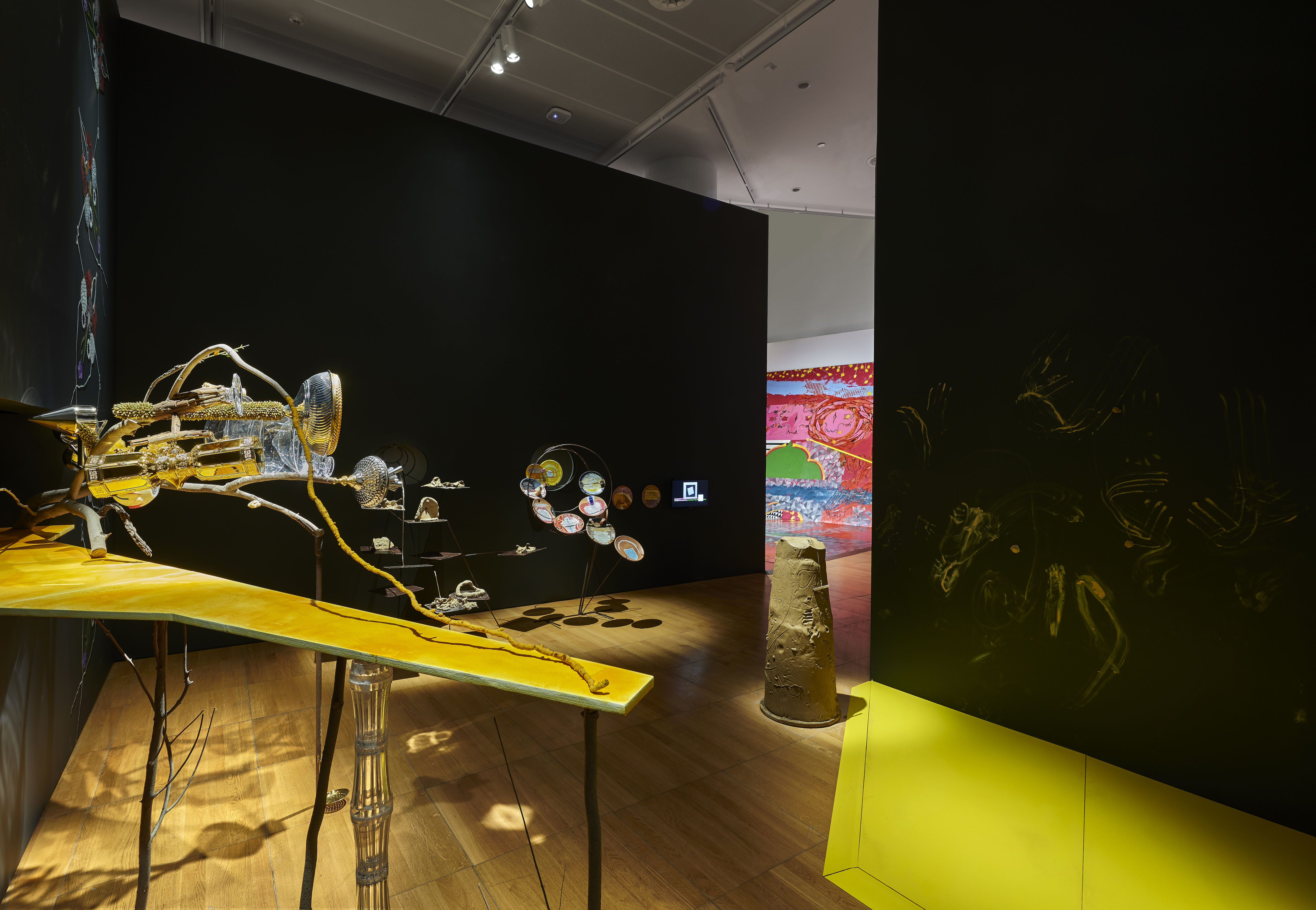 In Real Time is on view at NYUAD Art Gallery until June 9, 2024. Exhibiting artists include Moza Almatrooshi, as well as the artist trio Ramin Haerizadeh, Rokni Haerizadeh and Hesam Rahmanian with Julie Becton Gillum and Kiori Kawai.