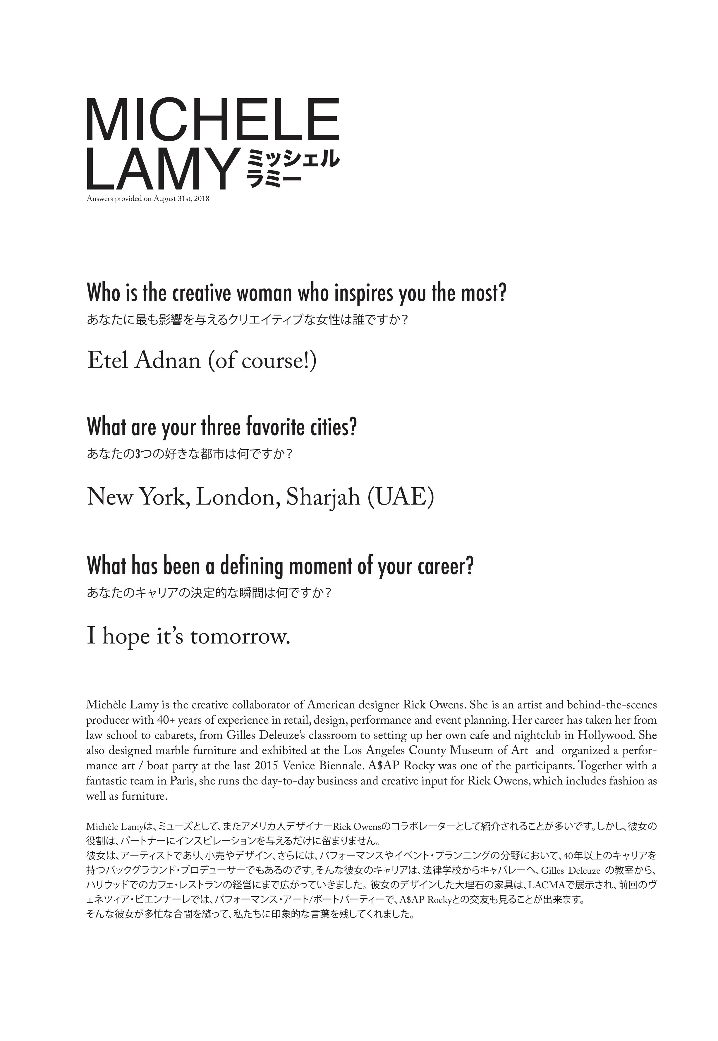 We are very excited to reveal our exclusive interviews for Global Art Daily Issue 02: Michèle Lamy and Maria Koch, two women who represent –– in our eyes –– the spiciest of the spicy creative women. Michèle is an icon. Her lifelong work has permitted her to achieve true creative freedom. How often do you meet a French businesswoman who wears a du-rag and gold teeth? Did we forget to mention her signature khol line along her forehead and stained fingertips, which bear witness to the grounding she has as a person and creative genius? Next to the fiery Lamy, Maria Koch might represent a milder spice. But her creative vision should not be underestimated. She’s at the helm of 032c Apparel, one of the hottest streetwear brands right now.