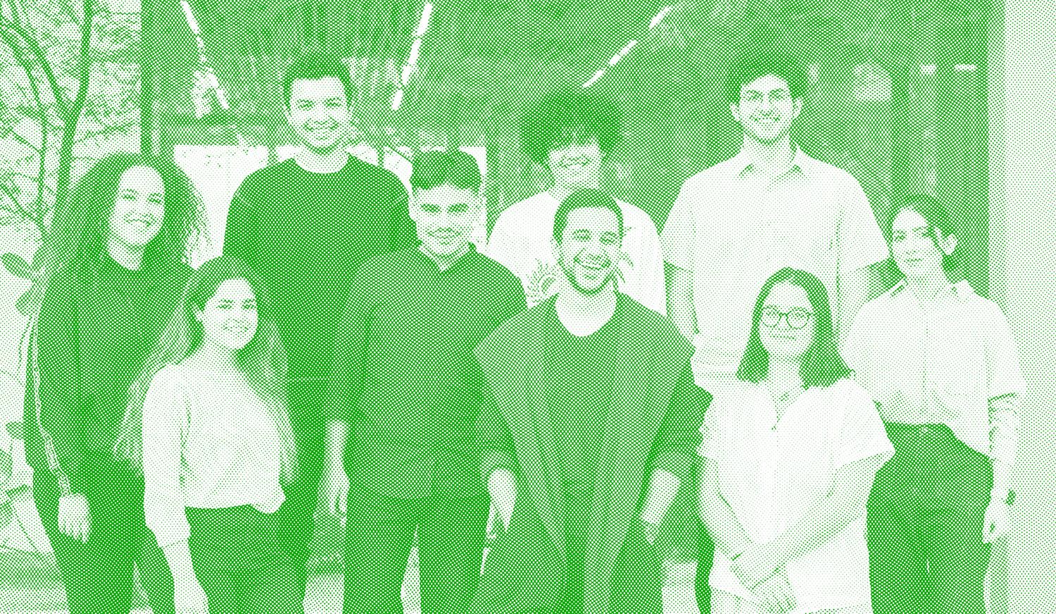 2. The Jameel Youth Assembly members. Left to right: Tala Khalil, Tasnim Tinawi, Mohammad Mhaisen, Daniel H. Rey, Ashay Bhave, Saad Boujane, Aliyah Alawadhi, Arthur de Oliveira, and Dina Al Khatib. Image courtesy of Jameel Arts Centre with edits by Ashay Bhave.