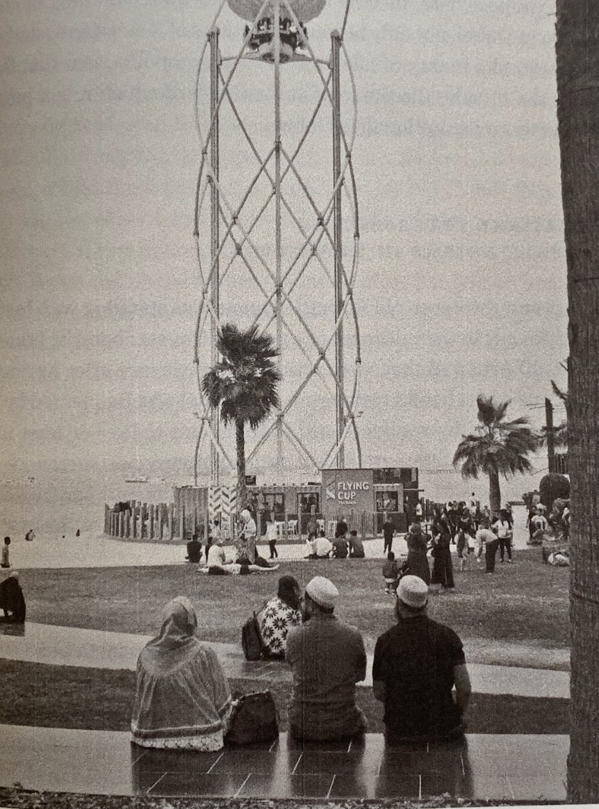 8. Left: A woman sitting in a male-dominated environment at Home Bakery in Dubai Design District. Image from Everyday Life in the Spectacular City. Right: Jumeirah Beach Residence. Image from Everyday Life in the Spectacular City